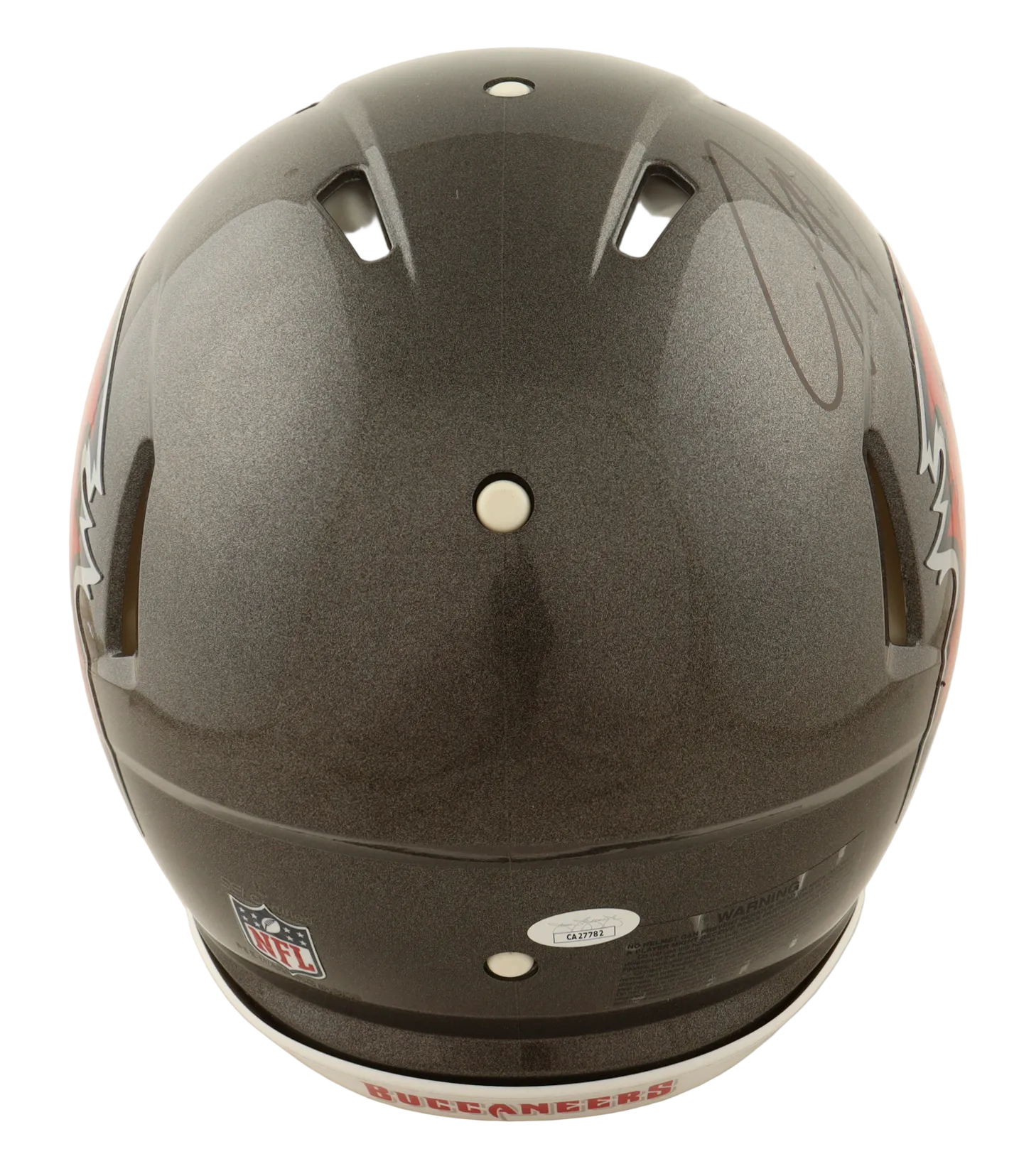 Riddell Tampa Bay Buccaneers full-size authentic on-field speed helmet. Hand-signed by Jeff Garcia. Please note, there is scuffing on the side straps of the helmet.
