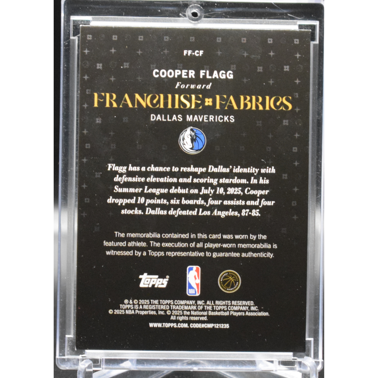 2025 Topps Chrome Basketball Cooper Flagg #FF-CF Franchise Fabrics