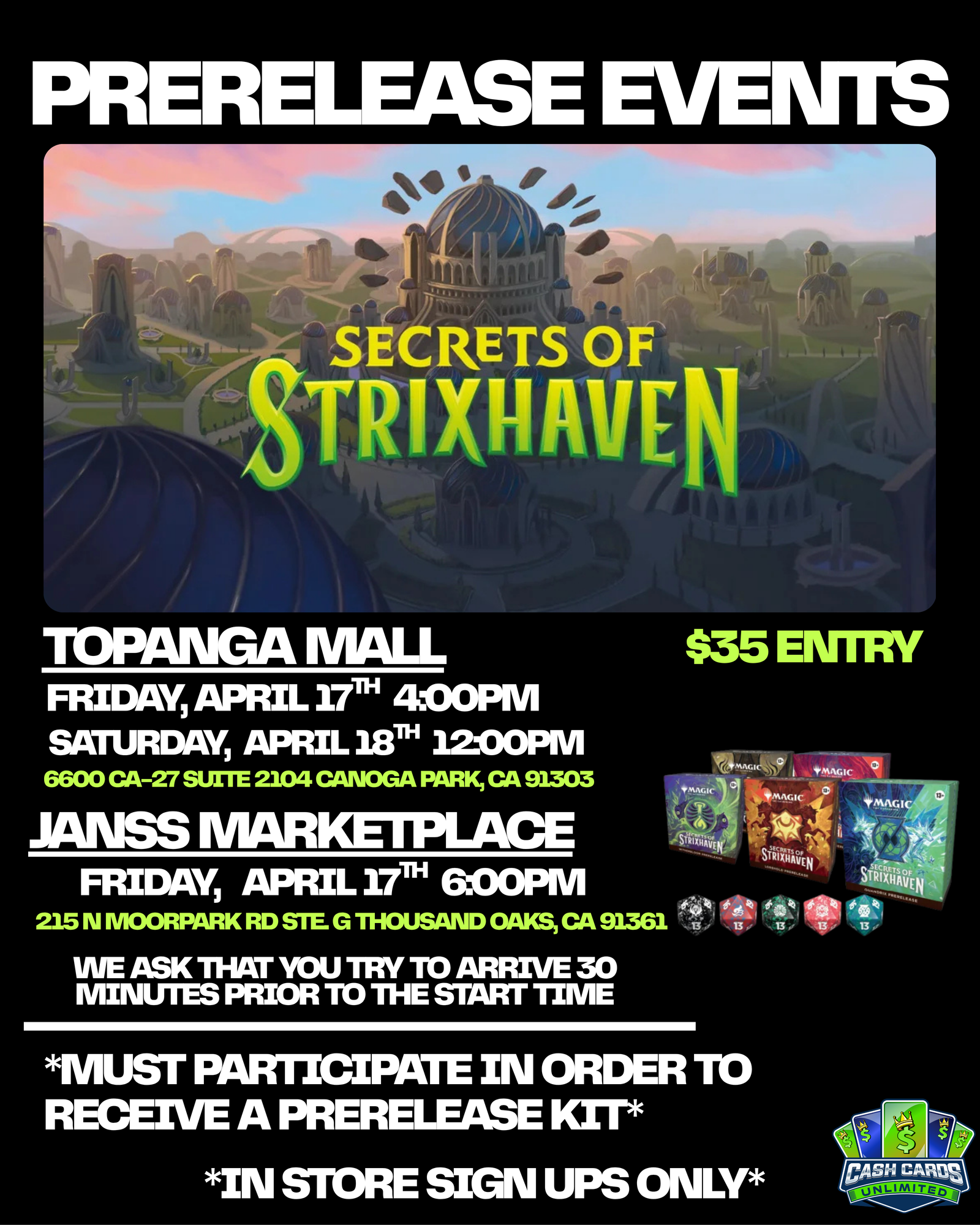 Casual game play! Trading! Giveaways/Raffles throughout the event!